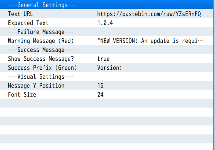 - Success Prefix (Green): The text that appears before your version number on a successful check (e.g., "Version: ").